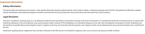 The test provides only preliminary test results. A more specific alternative chemical method must be used in order to obtain a confirmed analytical result.