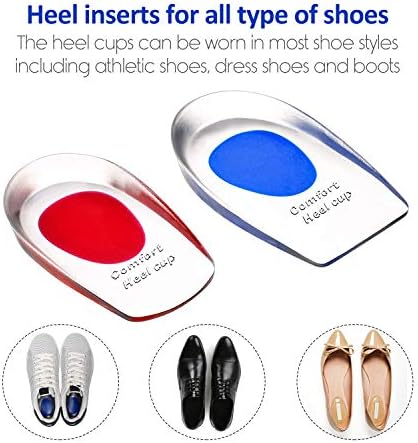 2 Pairs Gel Heel Cups, Silicone Heel Cup Pads for Plantar Fasciitis, Heel Spur &