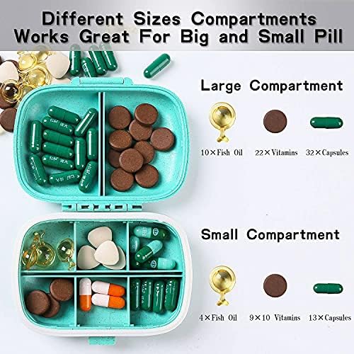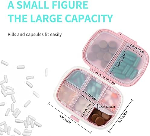 ❤ [Pill Organizer Compartment] The pill box has 8 compartments, 6 small compartments for small pills, 2 large compartments for large capsules. The inner cover and sealing ring are removable for easy cleaning.