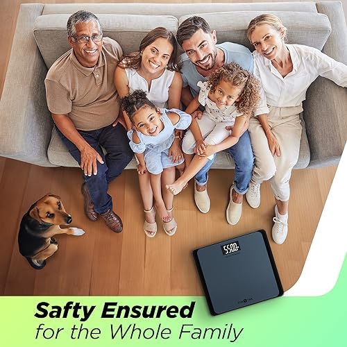 Safety Ensured for the Whole Family As we are always committed to Safety First, this scale for body weight is designed with durable 8mm tempered glass and anti-slip silicone feet to ensure every safe and stable weighing experience