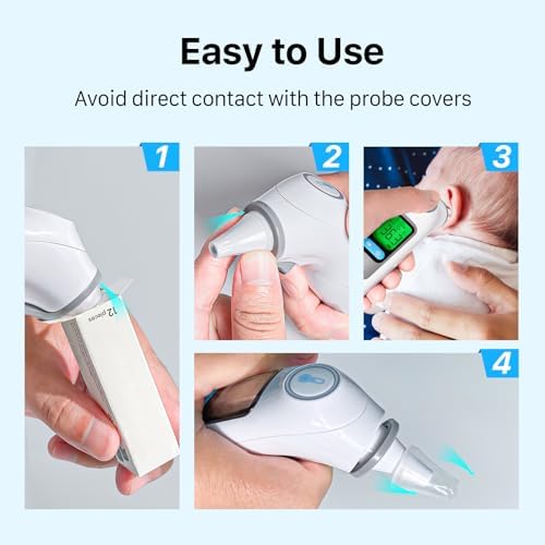 Easy to Use – Clean the lens of probe, then get on the cover, put on the thermometer cover inside the ear, after using it take off the thermometer probe covers