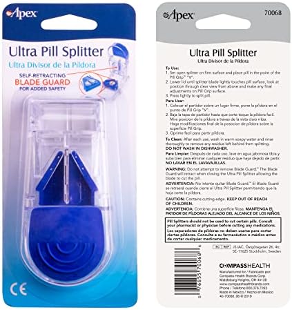 A pill cutter splitter for small pills or large pills, the Apex ultra pill cutter will fit the needs of most who their pills cut in half. The splitter works for pills and for tablets.