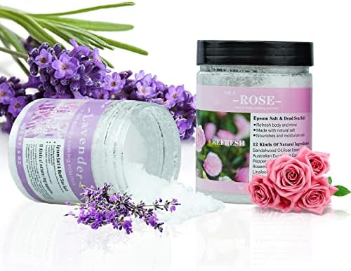 Our epsom bath salt for women relaxing includes 2x epsom bath salts with rose and lavender scent. Individually packed, scented in 2 distinctive fragrances, our bath salts gift set offers fun and ultimate relaxation to your home spa.