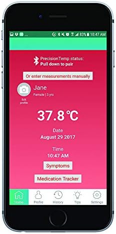 The 1 Second Ear Thermometer with BluetoothTM is a unique ear thermometer, offering users the ultimate in convenience with fast measurements. The probe illuminates, making measurements in the dark wonderfully easy. “Clean Me” eliminates the need for probe covers and indicates when the lens needs cleaning. Download and connect to the free MediLink app for tracking and health insights. This digital ear thermometer is intended to measure the human body’s temperature in regular mode, within the ear canal from energy radiated from the eardrum and the surrounding tissue. This device was designed to be reusable for clinical or home use, on people over 2 years of age.