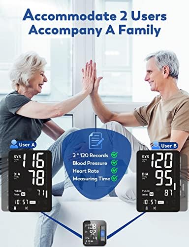 ❤️【𝟐𝟒𝟎 𝐑𝐞𝐜𝐨𝐫𝐝𝐬 & 𝐀𝐝𝐣𝐮𝐬𝐭𝐚𝐛𝐥𝐞 𝐂𝐮𝐟𝐟 𝐃𝐞𝐬𝐢𝐠𝐧】 The BP monitor can accommodate 2 users with up to 240 records (120 for each). And it takes 3 consecutive readings to find your average blood pressure, giving you a more comprehensive reference for health. The adjustable arm cuff (8.7 to 15.7 inches) features auto arm detection tech that alerts you with indicators if operated wrongly, ensuring you accurate results of every detection.