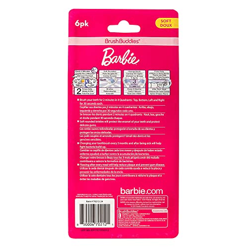 Brush Buddies 6 Pack Barbie Toothbrushes for Kids, Children’s Toothbrushes, Soft