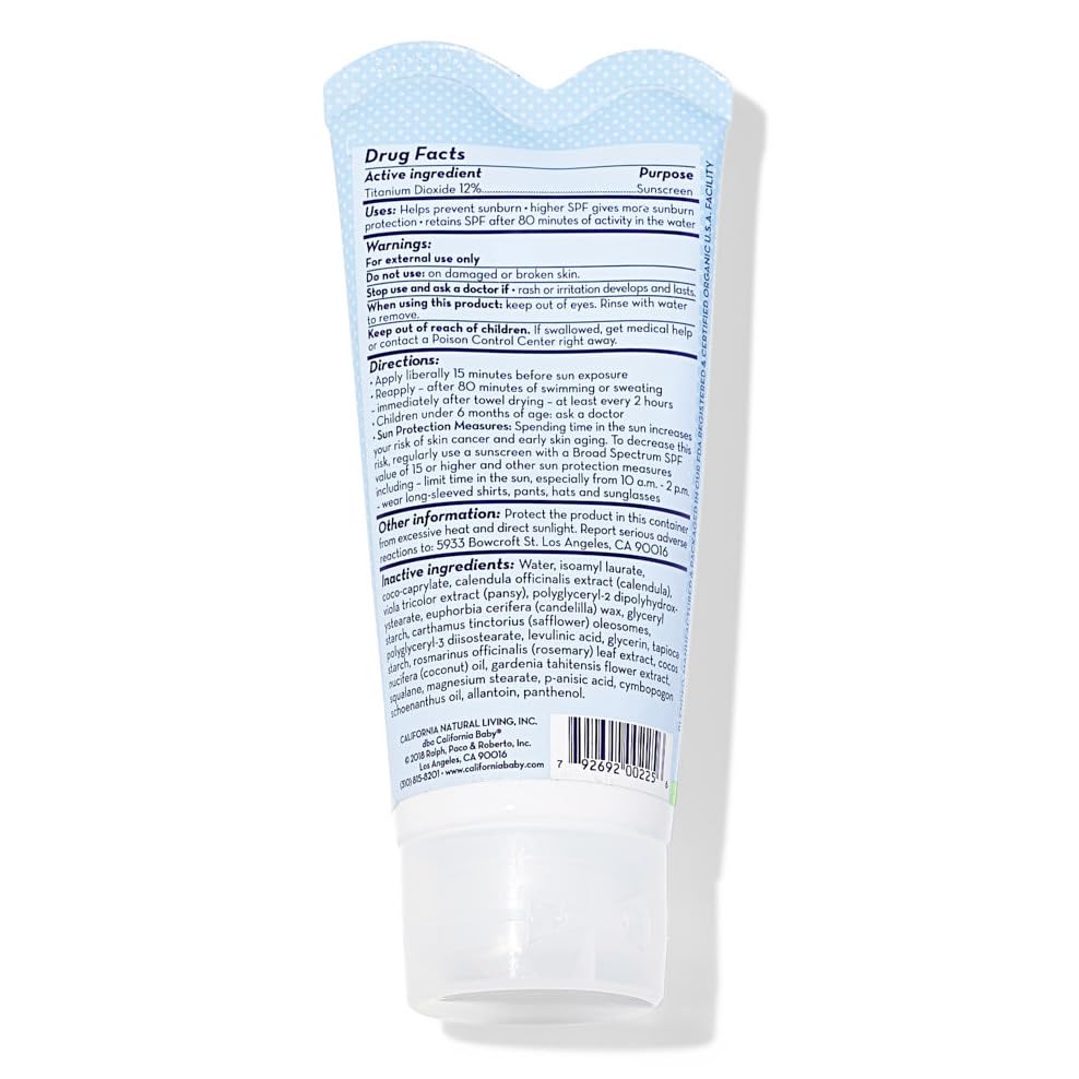 MINERAL SUNSCREEN – BABY SAFE INGREDIENTS: This physical sunscreen is highly rated by EWG for ingredient safety. The active ingredient is non-nano Titanium Dioxide. California Baby sunscreens are independently tested and free of the carcinogen Benzene.