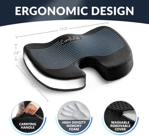 Supports Tailbone and Relieves Pressure – Ergonomically designed seat cushion provides maximum support and comfort while reducing pressure on the coccyx / tailbone and promotes healthy posture