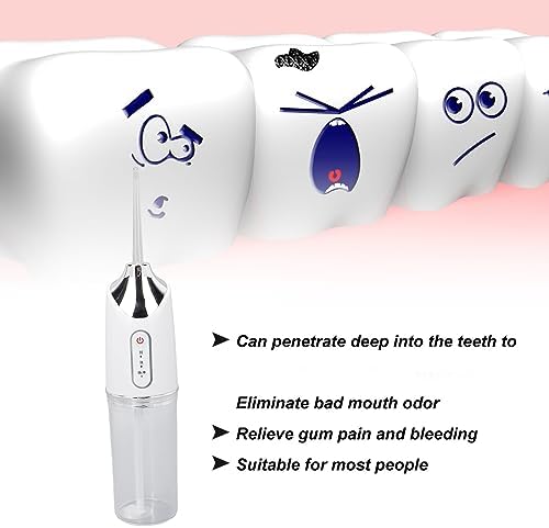 3 CLEANING MODES & 4 INTERCHANGEABLE NOZZLES: This Cordless Oral Flosser Tooth Cleaner has Normal, Soft, Pulse Modes to choose, low noise design, can adjust the best mode according to the sensitivity of your teeth and gums , to meet your daily oral hygiene needs. The water flosser comes with 4 replaceable nozzles, perfect for the whole family without the need to replace and buy new nozzles frequently.