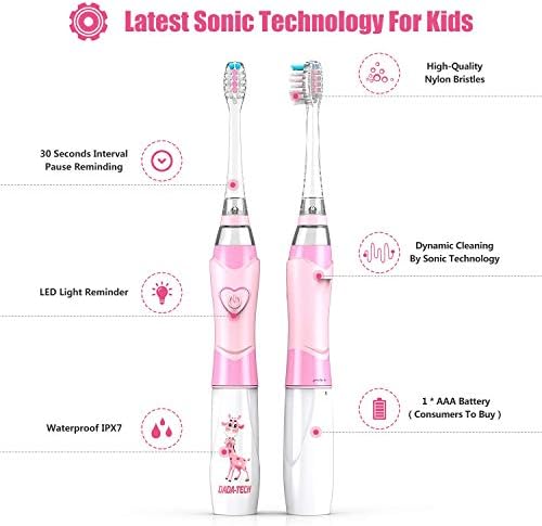 DADA-TECH Kids Electric Toothbrush Toddler Sonic Battery Powered Rainbow Light