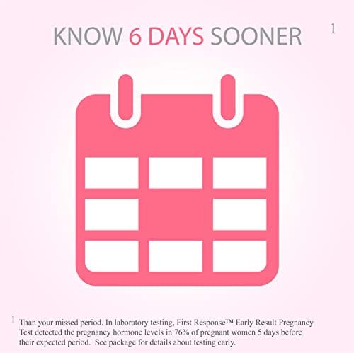It can be one of the most anxious waits in life. That’s why the First Response Early Result Pregnancy Test is designed to give you clear, quick yet accurate results up to 6 days before your missed period. First Response number one selling tests feature ultra sensitive technologies, allowing an accuracy of around 99 Percent. It can detect pregnancy up to 6 days earlier than some other pregnancy tests, which is why First Response popular home pregnancy test came top in the What To Expect Awards and comes in this handy yet easy-to-use test duo. In clinical testing, the First Response Early Result Pregnancy Test detected the hormone levels consistent with pregnancy in 62 Percent of women 5 days before their expected period, in 78 Percent of women 4 days before their expected period, in 87 Percent of women 3 days before their expected period and in 98 Percent of women 2 days before their expected period.