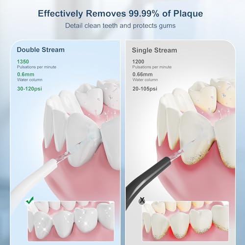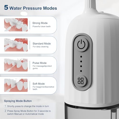 【5 Flossing Modes and portable design】 Geesoul portable cordless tooth pick has 5 cleaning modes and 4 nozzles.Removing up to 99% plaque from dental areas for improving gum health,at the same time,the portable design allows you to easily take it anywhere.