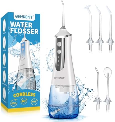 Make Your Use More Convenient: GENKENT water dental flosser is equipped with a 300ml large-capacity water tank. The cordless water flosser back adopts a non-slip design. our water picks for teeth cleaning overall shape is very suitable for the palm. The water floss 3 indicator lights allow you to easily distinguish different modes. The GENKENT water flosser overall simple and practical design makes your use more convenient convenient.