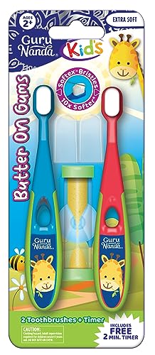 SOFT TONGUE CLEANER WITH SAND TIMER: The GuruNanda Butter on Gums Toddler Toothbrush provides extra protection to gums, cheeks & tongue. Its textured surface on the back of the head helps clean cheeks & skin inside the mouth. The 2 minutes sand timer ensures right brushing duration as advised by dentists, keeping your child engaged and helping develop a love for brushing.