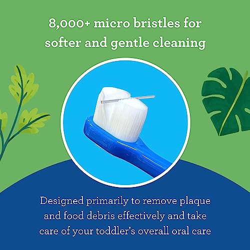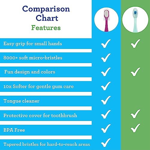GuruNanda Toddler Extra Soft Toothbrush is a dentists choice most preferred toothbrush with ultra-soft bristles to keep kids’ mouths clean and healthy. Kids toothbrush for Age 2 years +, Nano Bristles Floss Kids Toothbrush for Boys & Girls which comes with an omfortable subtle head that reaches every corner of the mouth and does not hurt delicate mouth of kids, Non-slippery rubberized handle for better grip and with tongue cleaner for clean teeth and happy smile.