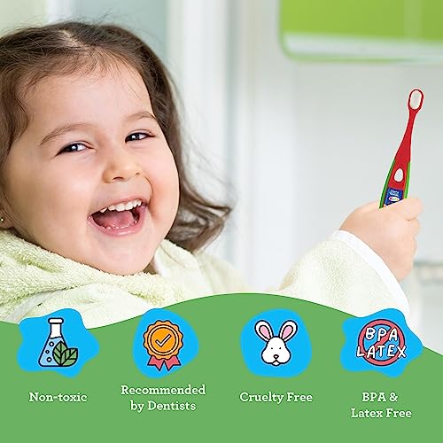 CERTIFIED & TRUSTWORTHY: You’ll receive 2 BPA and latex-free toothbrushes in different colors for use, replacement & sharing. These dentist-recommended toothbrushes are not only non-toxic but also cruelty-free, making them safe for your kid and the environment. A perfect first choice for your kids’ daily oral care routine.