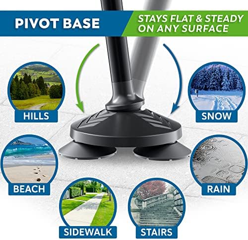 Pivoting Tip: The base pivots to stay flat on almost any angled surface. Maximum ground contact on the non-scratch rubber base. The 4 pronged base acts like a quad cane