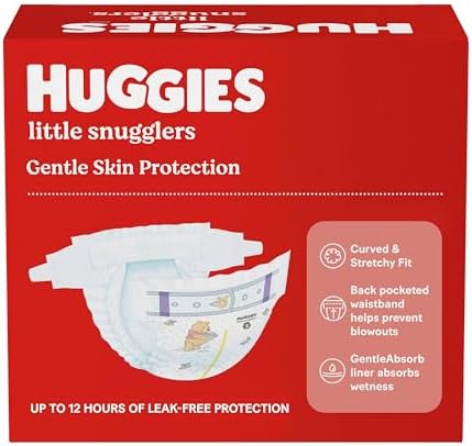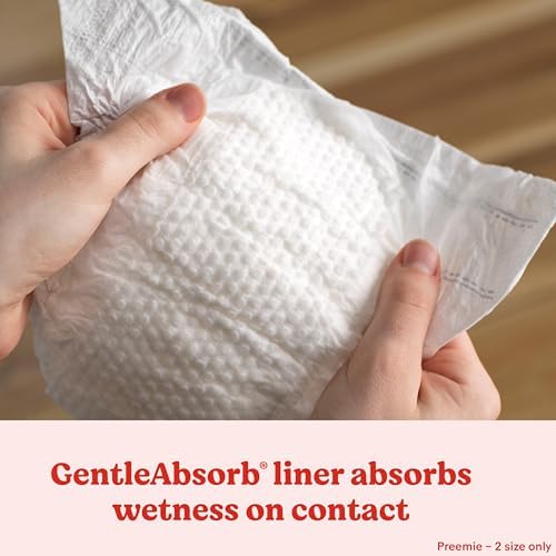 GentleAbsorb Liner: Each disposable diaper is made with Huggies’ GentleAbsorb Liner** that absorbs wetness on contact to help keep your baby’s skin clean and healthy(**Available in Little Snugglers sizes Preemie-2)