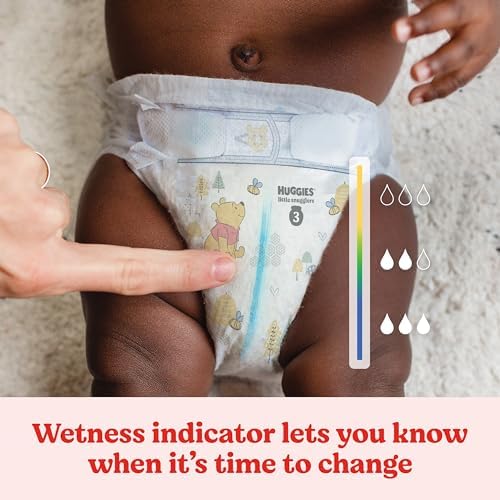 With up to 12 hours of leak protection for your baby’s delicate skin, Huggies Little Snugglers Diapers are our perfect choice for your little one. Huggies Little Snugglers newborn diapers offer gentle skin protection and showcase a curved and stretchy fit with all-around comfort for a gentle tummy fit. These baby diapers feature Huggies’ GentleAbsorb Liner that absorbs wetness on contact to help keep your baby’s skin clean and healthy. Plus, with a soft, pocketed back waistband, these disposable baby diapers help prevent leaks and blowouts while helping keep mess away from your baby’s skin. Extra soft materials provide belly comfort and protection from red marks during Tummy Time. Little Snugglers baby diapers are made with a breathable outer cover and are hypoallergenic, dermatologist tested and safe for sensitive skin. Huggies is the only leading brand entirely fragrance free*, our diapers are also made without parabens, lotions, elemental chlorine and natural rubber latex. Little Snugglers also feature a color-changing wetness indicator that lets you know when your baby’s diaper is ready to be changed. Featuring Disney Winnie the Pooh designs, Little Snugglers Diapers are available in size Preemie (up to 6 lbs), size Newborn (up to 10 lbs), size 1 (8-14 lbs), size 2 (12-18 lbs), size 3 (16-28 lbs), size 4 (22-37 lbs), size 5 (27+ lbs) and size 6 (35+ lbs). For the perfect diapering duo, pair Huggies diapers with Huggies Natural Care Sensitive Baby Wipes! (*among leading national diaper brands, across all offered variants)