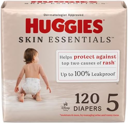 Huggies Size 5 Diapers: 120 Huggies Skin Essentials Baby Diapers (2 Packs of 60), Size 5 (27+ lbs)