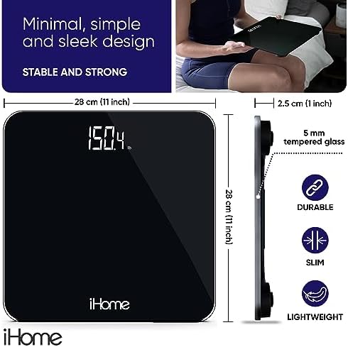 Design with Function Digital Scale: Minimal, simple and slim design saves the space and is sturdy enough to hold up to 400 pounds. It looks great and easily fits into almost anywhere in your bathroom, bedroom or gym. Round-corner design spare household members from sharp edges; 5mm tempered glass provides exceptional sturdiness; Sleek surface is easy to clean.