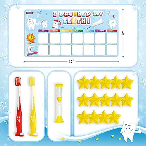 Set includes: 1 x chart, 14 x magnetic stars, 1 x sand timer, 2 x tooth brushes;