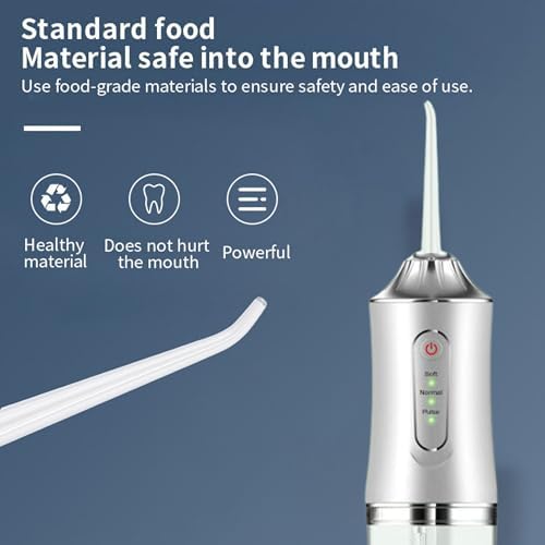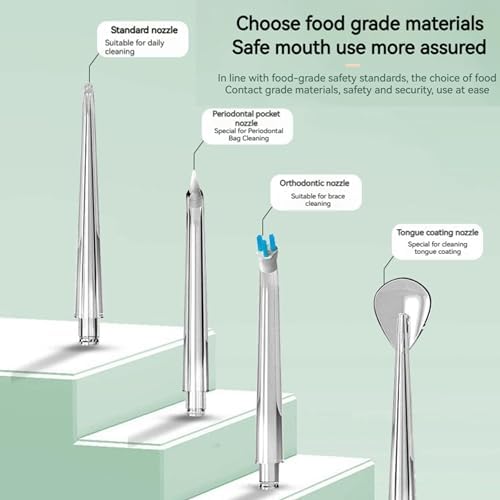 ☆【3 Modes & 4 Nozzle】The water teeth cleaner pick has Soft,Pulse,Strong modes.Recommend choose soft mode for the first use.Equipped with 4 interchangeable the 360° rotatable nozzle are suitable for daily gum cleaning, periodontitis cleaning, braces cleaning, and tongue cleaning. meet your different daily oral care needs.