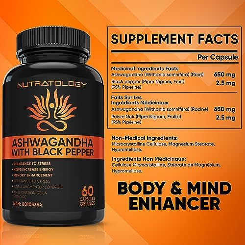 Premium Quality – Nutratology’s Organic Ashwagandha Capsules are sourced from Ashwagandha root & formulated with Black Pepper to ensure the optimum concentration of powerful anti-inflammatory properties. Ashwagandha has been used for centuries in Ayurvedic herbal medicine to help increase energy and resistance to stress.