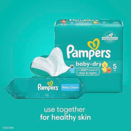A good night’s sleep starts with a great diaper, and Pampers Baby-Dry diapers give you and your baby up to 100% leakproof nights and happy mornings. Made to protect your baby’s delicate skin, our exclusive LockAway Channels absorb wetness and lock it safely away, while our protective Dri-Weave Liner helps keep skin healthy. Plus, our Baby-Dry diapers are hypoallergenic and completely free of parabens and latex.* These are just a few of the many reasons Pampers is the #1 pediatrician recommended diaper brand**—and your baby’s best bet for comfy protection. Pampers diapers also keep messes to a minimum. To help contain leaks and prevent messes, our Baby-Dry diapers feature all-around stretchy sides and large tape fasteners for a secure and comfy fit. Plus, they come equipped with our Dual Leak-Guard Barriers that are specially designed to protect around the legs, where leaks tend to happen most. And when your baby is due for a diaper change, our handy Wetness Indicator lets you know. So there’s no need for guesswork. Use Baby-Dry diapers with our Pampers Baby-Clean Wipes to help keep your baby’s skin healthy and prevent irritation. Packaging and prints may vary. Ships in 100% recyclable packaging. *Natural Rubber. **Based on a 2021 survey of U.S. and Canadian pediatricians.