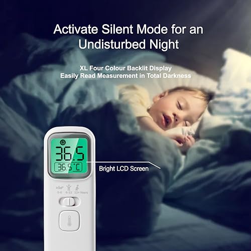 BRIGHT, USER-FRIENDLY BACKLIT DISPLAY – This infrared forehead thermometer features a four-colour backlit display with fever alerts to provide faster, easier-to-understand information during the day or in nighttime conditions for quiet, comfortable care.
