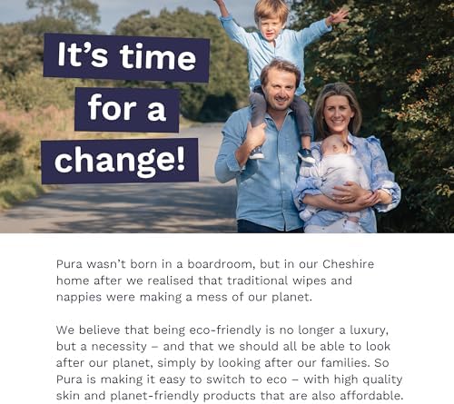 We set out to create a high performance, low environmental impact diaper that doesn’t compromise on skin safety, comfort or value for money. Approved by dermatologists to be gentle on sensitive, newborn skin, our diapers feature an umbilical cut-out to protect the delicate belly area and a handy color changing wetness indicator. Organic cotton enhanced, with plant-based materials against babies’ skin, they’re luxuriously soft and verified by Allergy UK as skin-safe as well as EU Ecolabel verified to have a low environmental impact. Meet the Pura family Pura didn’t start in a boardroom. It was born in the British home of Guy and Abi Fennell. Created by parents, for parents, Pura was founded to make clean, safe and planet-friendly products affordable for all. Pura is a Carbon Neutral business and a certified B-Corp.