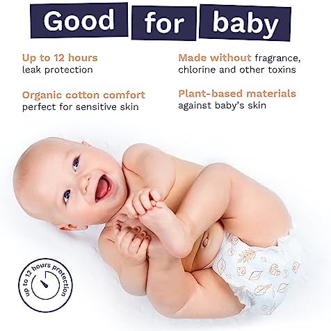 GOOD FOR BABIES: Totally Chlorine Free (TCF) Super soft and comfy, our diapers are enhanced with organic cotton, perfect for delicate newborn skin. With only plant-based materials against your baby’s bottom, our dermatologically tested, allergy-certified diapers are made without fragrance, chlorine bleaching, lotion, parabens, natural rubber latex and phthalates.