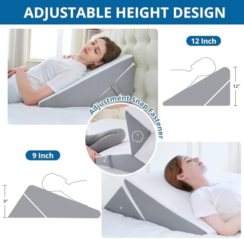 7-in-1 Adjustable Design: Indulge in versatile comfort with our meticulously engineered 7-in-1 adjustable wedge pillow. Ergonomically designed 30-degree angle and flexible height (9″ or 12″), our incline pillow could cater to your specific needs, promoting optimal spinal alignment and reducing muscle tension. The spacious dimensions of 22” depth x 22” width also provide a relaxation area that enhances sleep quality.