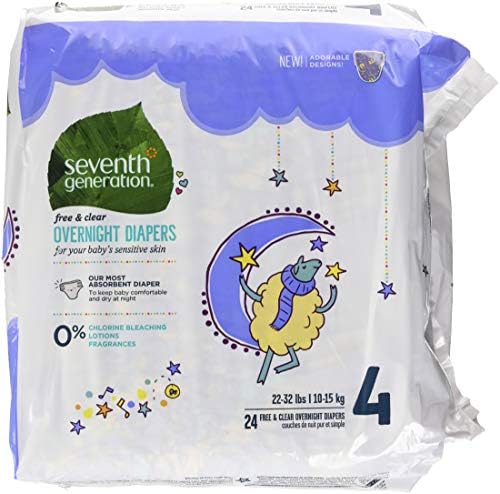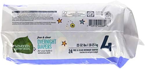 Seventh Generation Baby Overnight Diapers, Free & Clear, Stage 4, 22-32lbs, 24