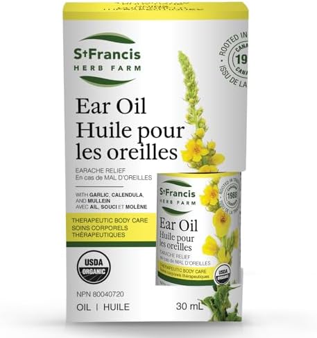 One of our most popular formulas, our Ear Oil is specifically intended for topical use in the ear as an analgesic for symptomatic relief of pain associated with ear infections (including swimmer’s ear) Who it’s for: For adults and children suffering from earache. Attributes: Certified Organic or Wildcrafted Herbs, Non GMO, Corn Free, Soy Free, Vegan. Made in Canada. Medicinal Ingredients: Mullein (Verbascum thapsus, flower and leaf), Calendula (Calendula officinalis, flower), Garlic (Allium sativum, clove), St. John’s Wort (Hypericum perforatum, flower) Non-Medicinal Ingredients: Certified Organic Extra Virgin Olive Oil Dosage: Adults and children: Place five drops of oil directly in the external ear canal three times daily.
