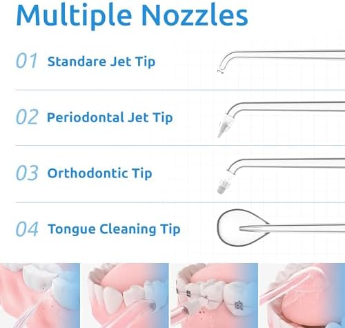 【Value Package】: SYNHOPE provide 30days no reason refund warranty and 24 hours technical support to ensure you make decision with ease and confidence. Designed for home use, our water flosser ensures a thorough and efficient clean, becoming an essential part of your daily oral hygiene practices. The flosser also includes four interchangeable nozzles, offering a variety of cleaning options for different dental needs.