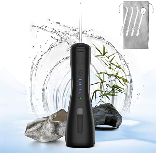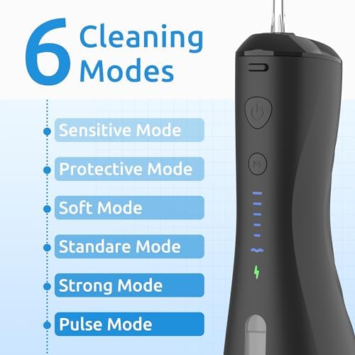 SYNHOPE Home Use Cordless Water Flosser Pick for Teeth Cleaning, 6 Mode Oral Irrigator with 4 Nozzles (Black)