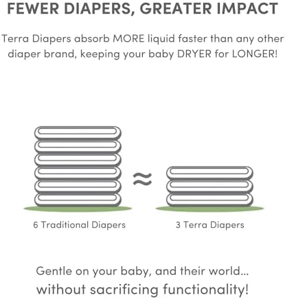 Terra makes products that are better for your baby, and their world, without compromising functionality! Terra plant-based diapers and bamboo baby wipes are the real deal – they perform like you need them to – and are better for the environment. Terra Diapers are 85% plant-based, which is as much plant-based material as we can currently use without sacrificing performance. Our diapers are designed with ultra-soft materials and a gentle, hypoallergenic liner that’s free of harmful chemicals, making them safe and gentle for even the most sensitive skin. Our diapers provide a snug fit and reliable leak protection to keep your baby dry and comfortable, even overnight. The unique 360˚ Absorb Pad increases the absorbency area for instant dryness and 3D leak guards prevent leaks and side spills. Within 60 seconds of wetting, the diaper top sheet is dry to the touch, meaning you don’t have to change your little one as often because they’re dry! Even the wetness indicator is plant-based. When you choose Terra, you’re not only making a choice that’s safe for your baby, but you’re also making a choice that’s better for the planet.