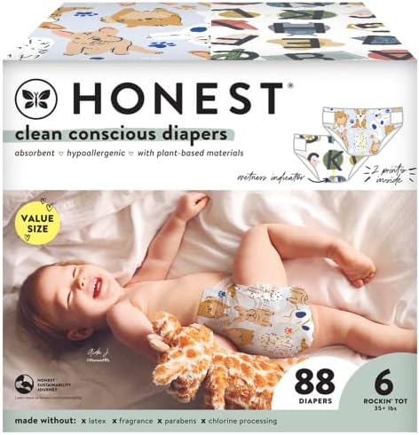 Clean Conscious Diapers are designed with safe plant-based materials, a wetness indicator (so you know when it’s time for a fresh one), enhanced blowout protection, and advanced absorption for dry, happy babes