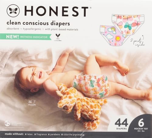 Clean Conscious Diapers are designed with safe plant-based materials, a wetness indicator (so you know when it’s time for a fresh one), enhanced blowout protection, and advanced absorption for dry, happy babes