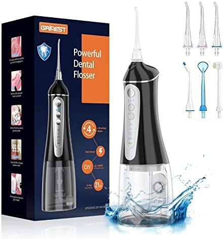 【Best Water Dental flossers for Teeth】 Grinest Dental Floss has 4 modes, 6 360 ° rotating nozzles, which can further clean your teeth, gums and braces, making your smile more confident