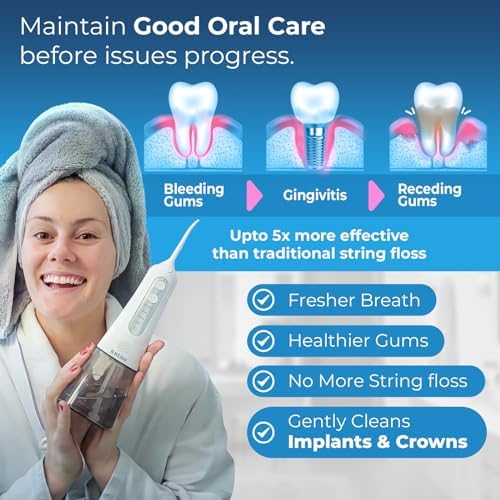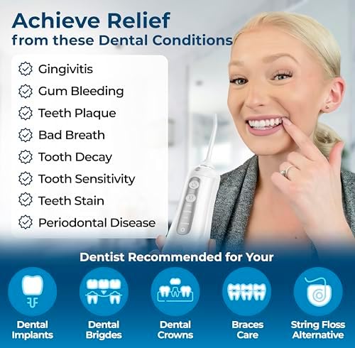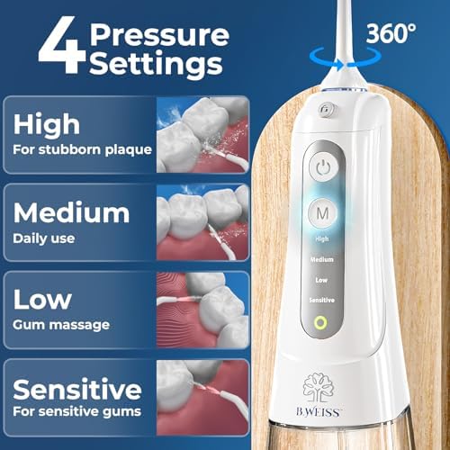 DEEPLY CLEAN TEETH & IMPROVE GUM CONDITION-Experience enhanced oral hygiene with the B. WEISS oral irrigator, a powerful water flosser for teeth cleaning. Utilizing an upgraded unique pulsation technique, this cordless water flosser delivers a high-pressure water pulse of 30-120PSI, providing a thorough clean while effectively massaging the gum. It is especially beneficial for addressing issues like bleeding gums, and bad breath, and is suitable for orthodontic, bridge care, and braces.