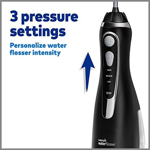 ADVANCED CORDLESS DESIGN: Enjoy the convenience of cordless water flossing and a waterproof design for use in the shower. Includes 3 pressure settings ranging from 45 to 75 PSI for a custom clean, plus ultra-quiet operation. Flow Rate per Minute : 10 Ounces ( 296 ml )