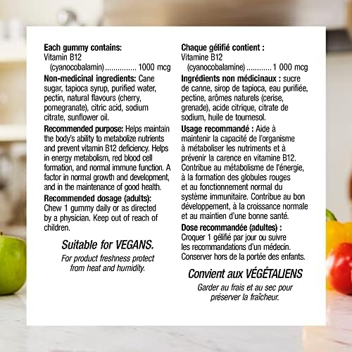 Help Prevent Vitamin B Deficiencies: Each gummy contains 1,000 mcg of Vitamin B12, ideal for preventing and correcting vitamin B12 deficiency, especially in older adults and anyone with low-stomach acid or malabsorption issues