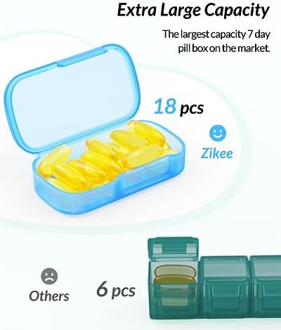 ZIKEE 7 Packs Extra Large Pill Organizer, Portable Pill Box 7 Day for Pocket