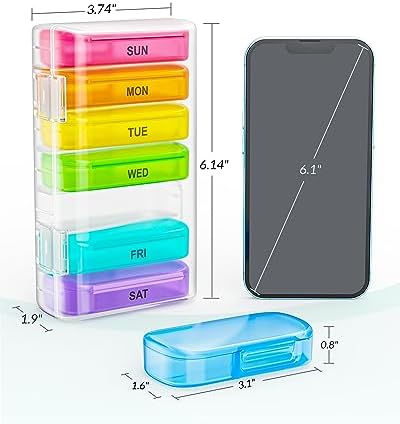 Freely to Manage Daily Pills: The vitamin organizer 7 day features colorful design and date labels, which allows you to color code different medications or organize your supplements in date. Your Pills, Your Colors, Your Days.
